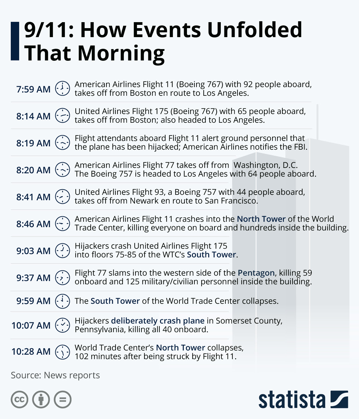 Chart 20 Years Since 9 11 How Events Unfolded That Morning Statista